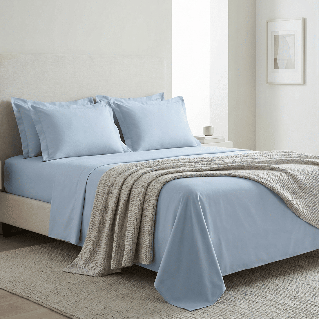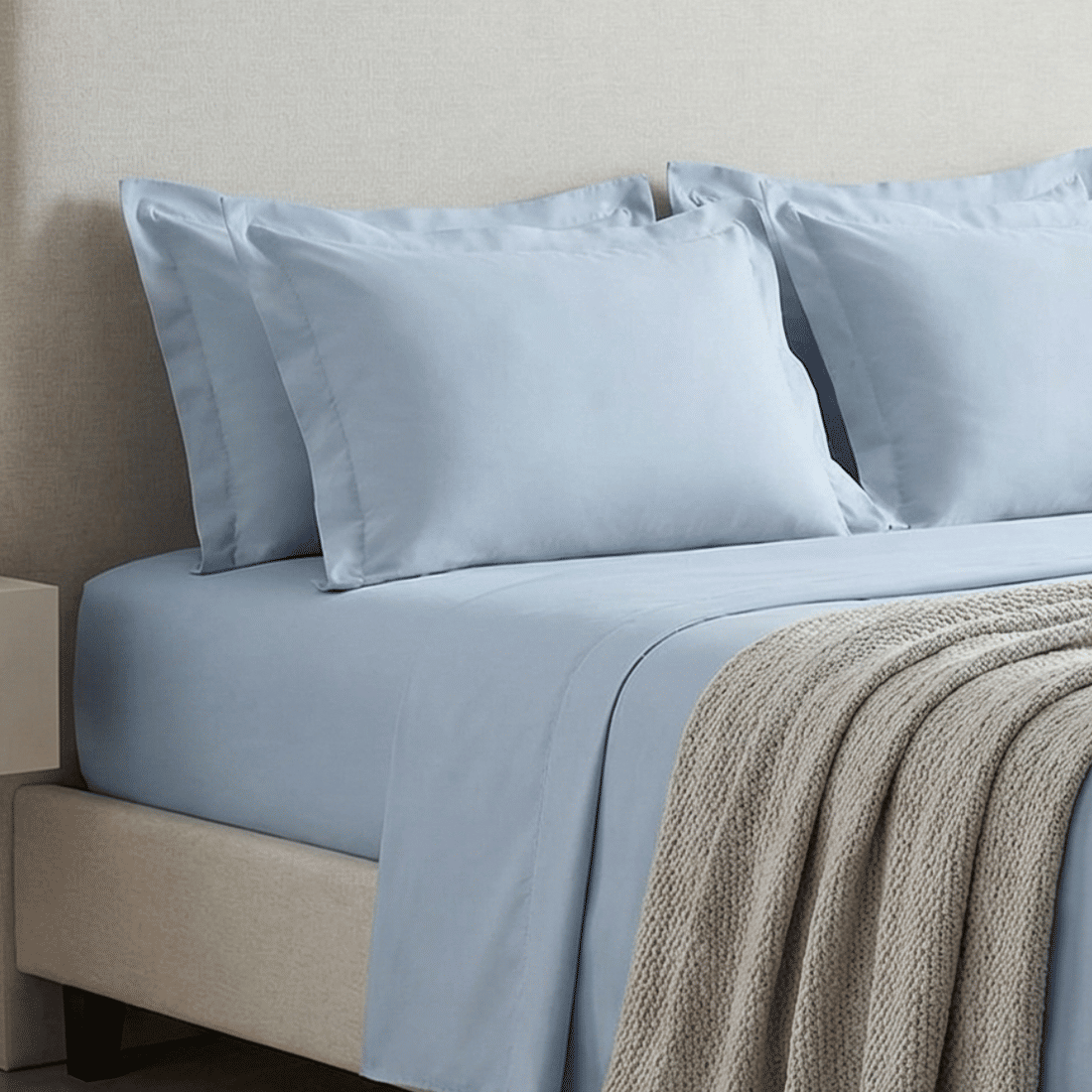 Com toque acetinado e textura suave, o tecido em algodão penteado garante máxima maciez, respirabilidade e durabilidade, mantendo a cama sempre fresca e aconchegante.