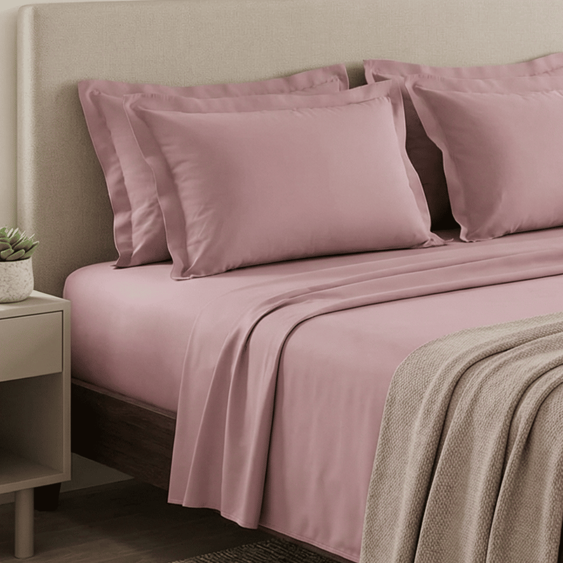 Com toque acetinado e textura suave, o tecido em algodão penteado garante máxima maciez, respirabilidade e durabilidade, mantendo a cama sempre fresca e aconchegante.