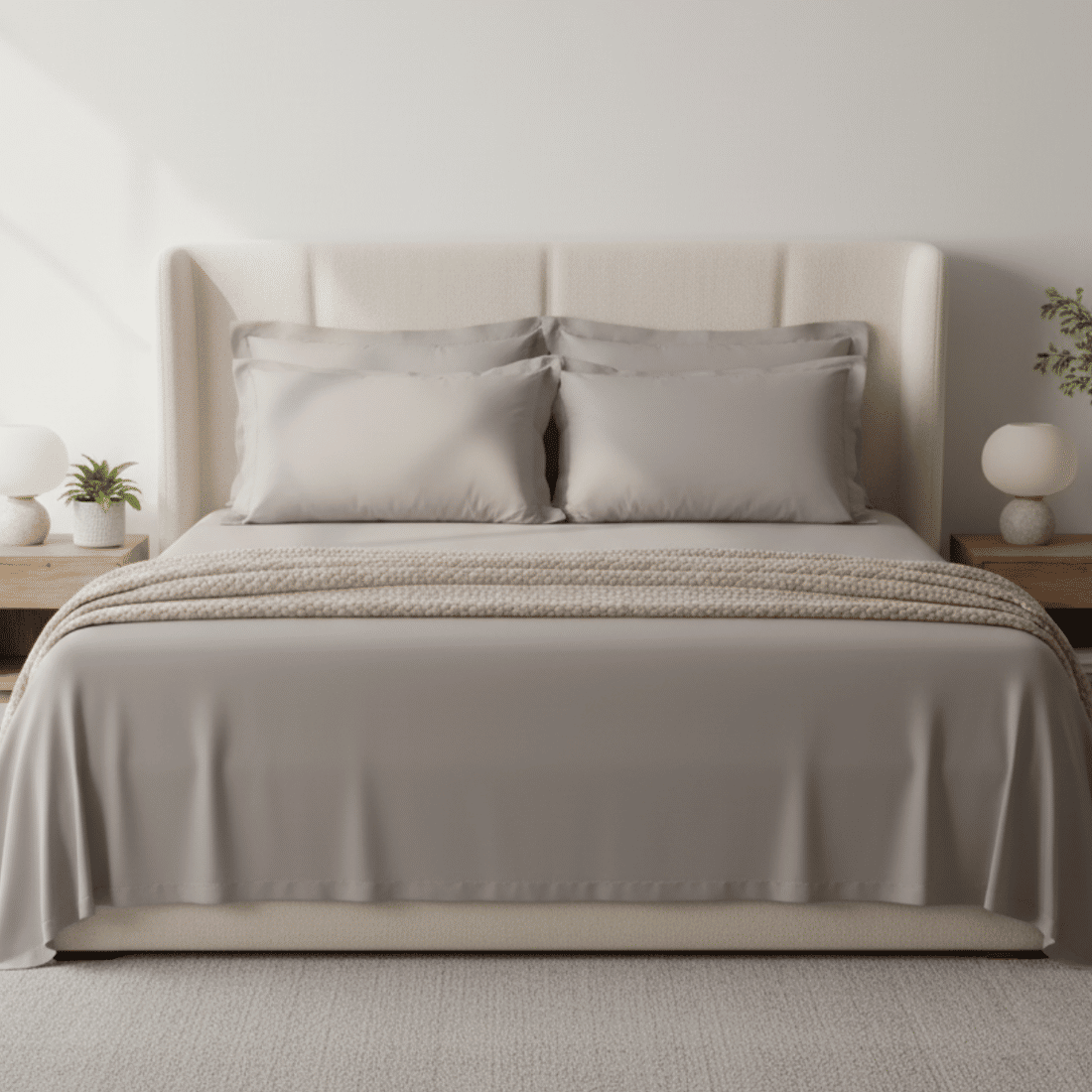 Com toque acetinado e textura suave, o tecido em algodão penteado garante máxima maciez, respirabilidade e durabilidade, mantendo a cama sempre fresca e aconchegante.